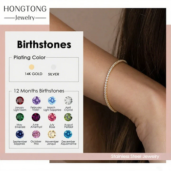 HONGTONG in acciaio inox rotondo Gypsophila Birthstone da donna placcato oro collana bracciale Tennis catena Charm gioielli all'ingrosso