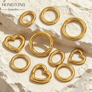 HONTONG 304 paslanmaz çelik kalp şeklinde yuvarlak pürüzsüz bahar toka çanta toka DIY bağlantı Charms jewaccessories aksesuarları